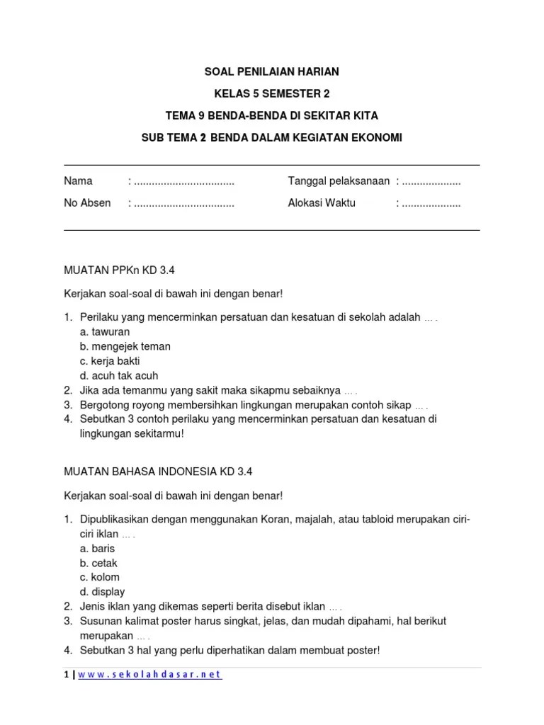 Silahkan dishare soal uas bahasa indonesia kelas 5 semester 2 ini sebagai bahan pembelajaran dirumah. Soal uts uas ukk semester 1 semester 2 beserta kunci jawaban. Buku latihan soal tematik sd kelas 1 2 3 4 5 6 semester ganjil dan. All new ulangan harian tematik sd/mi kelas 5 tim guru teladan indonesi. Di sekolah biasanya di adakan ulangan tengah semester ganjil.