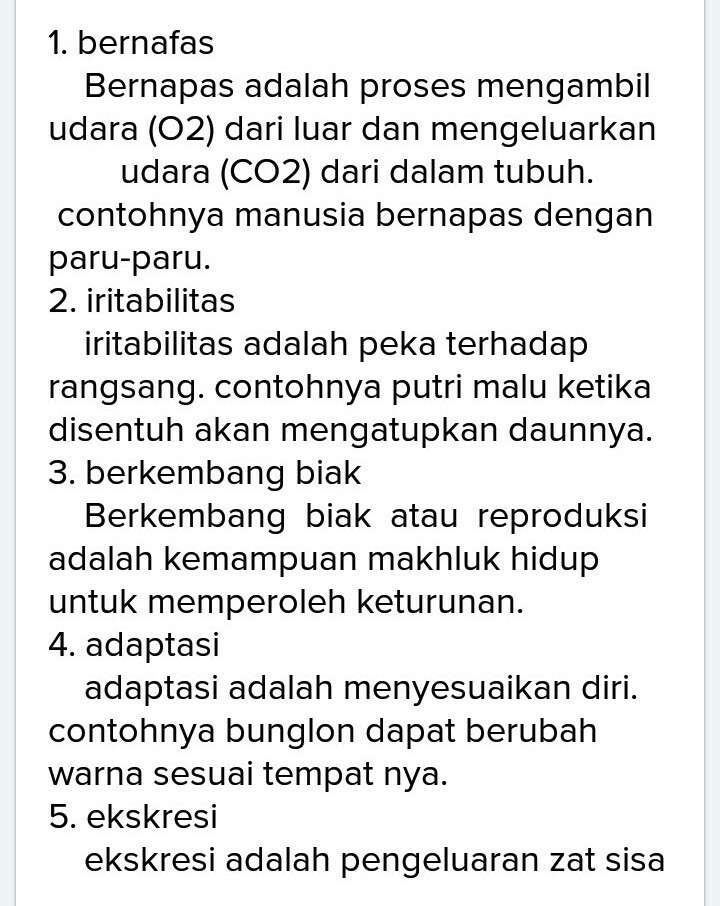 Membutuhkan makanan dan nutrisi · 4. Bentuk pertanyaan sebutkan 8 ciri ciri makhluk hidup dan jelaskan maksudnya! Perubahan bentuk selanjutnya dari daur hidup katak ialah menjadi katak muda. Ayam merupakan hewan yang termasuk dalam keluarga unggas. Virus disebut sebagai partikel zat dan bukan sel organisme, karena virus tidak memiliki protoplasma.